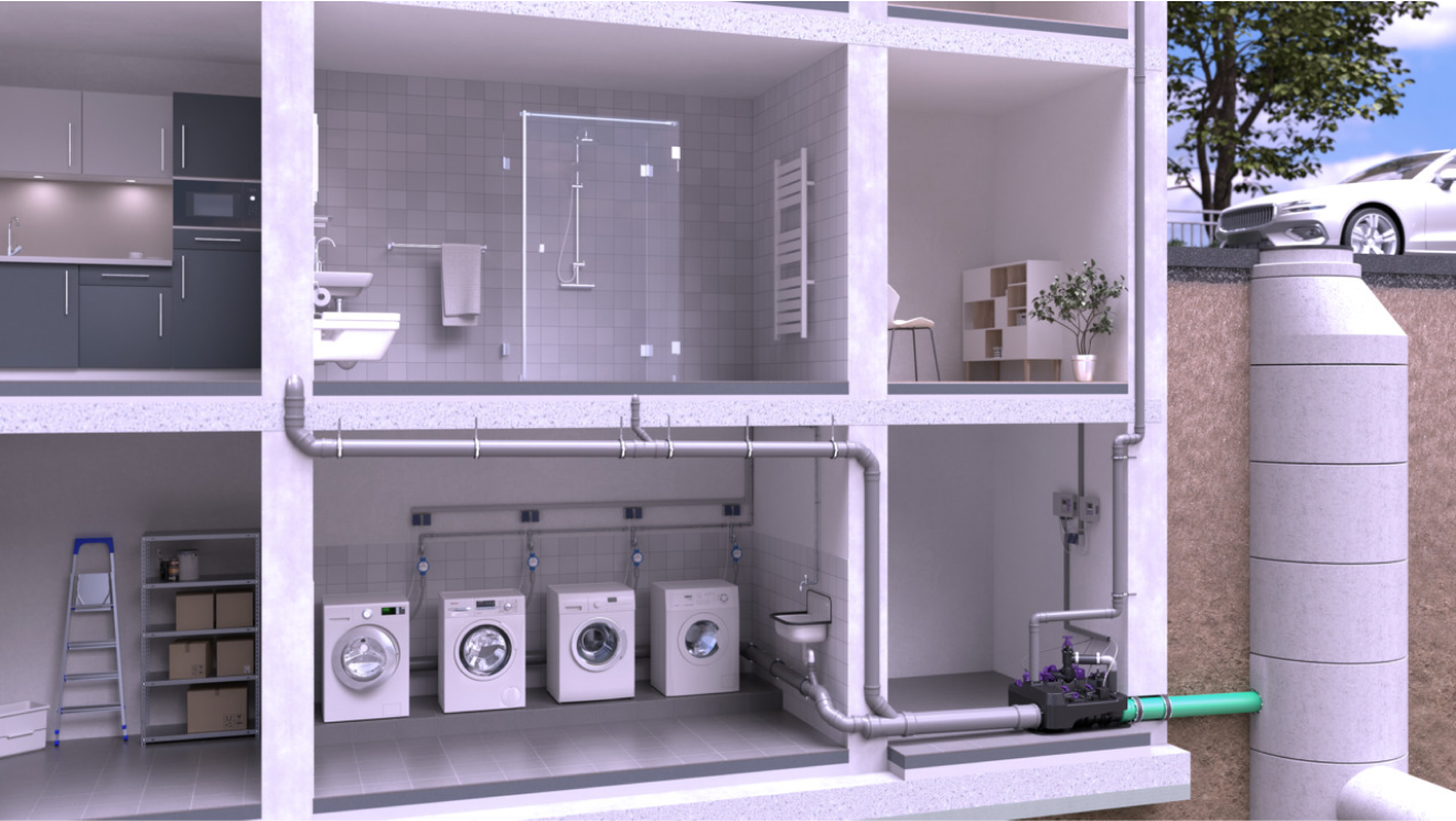 The system is assembled plug-in ready so the installation is simple and quick and no specialist is required for the connection. The ongoing operating costs are low because the pump only runs in the event of backwater. In contrast to a conventional lifting station, maintenance on a hybrid lifting station only needs to be carried out half as often in a commercial operation. And the reduced wear significantly increases its longevity. All this makes the Ecolift L an economical alternative for new buildings and renovations.