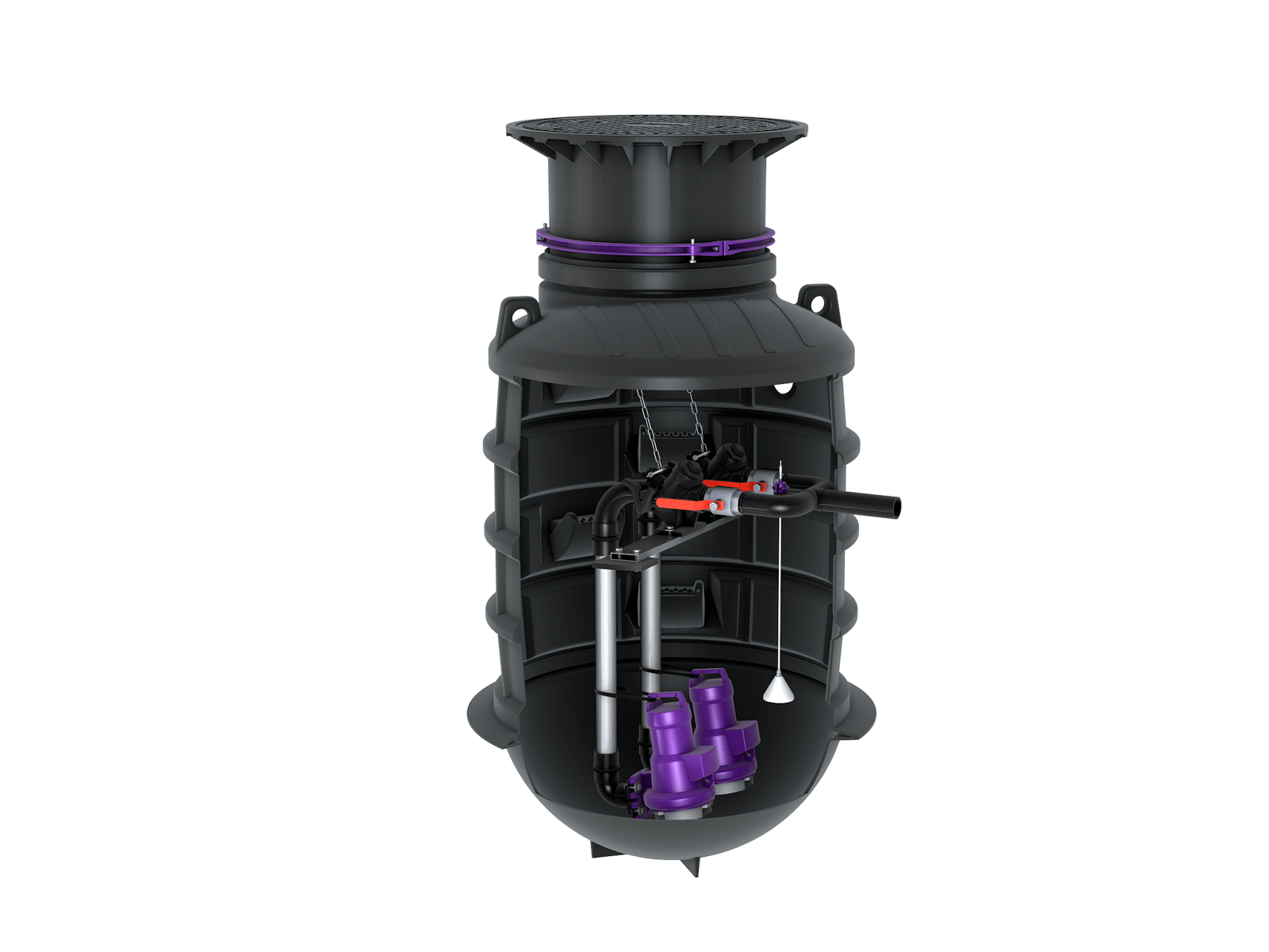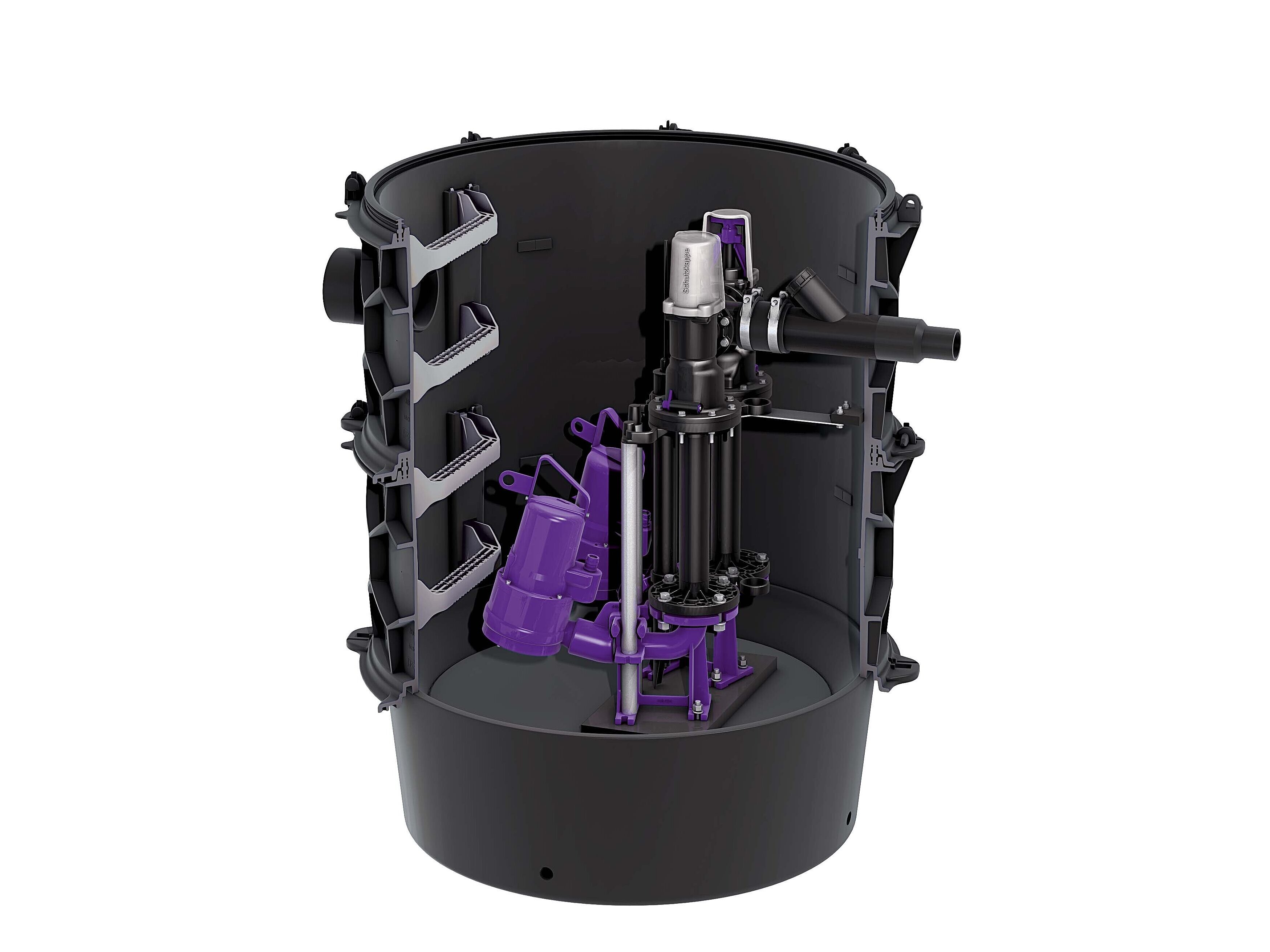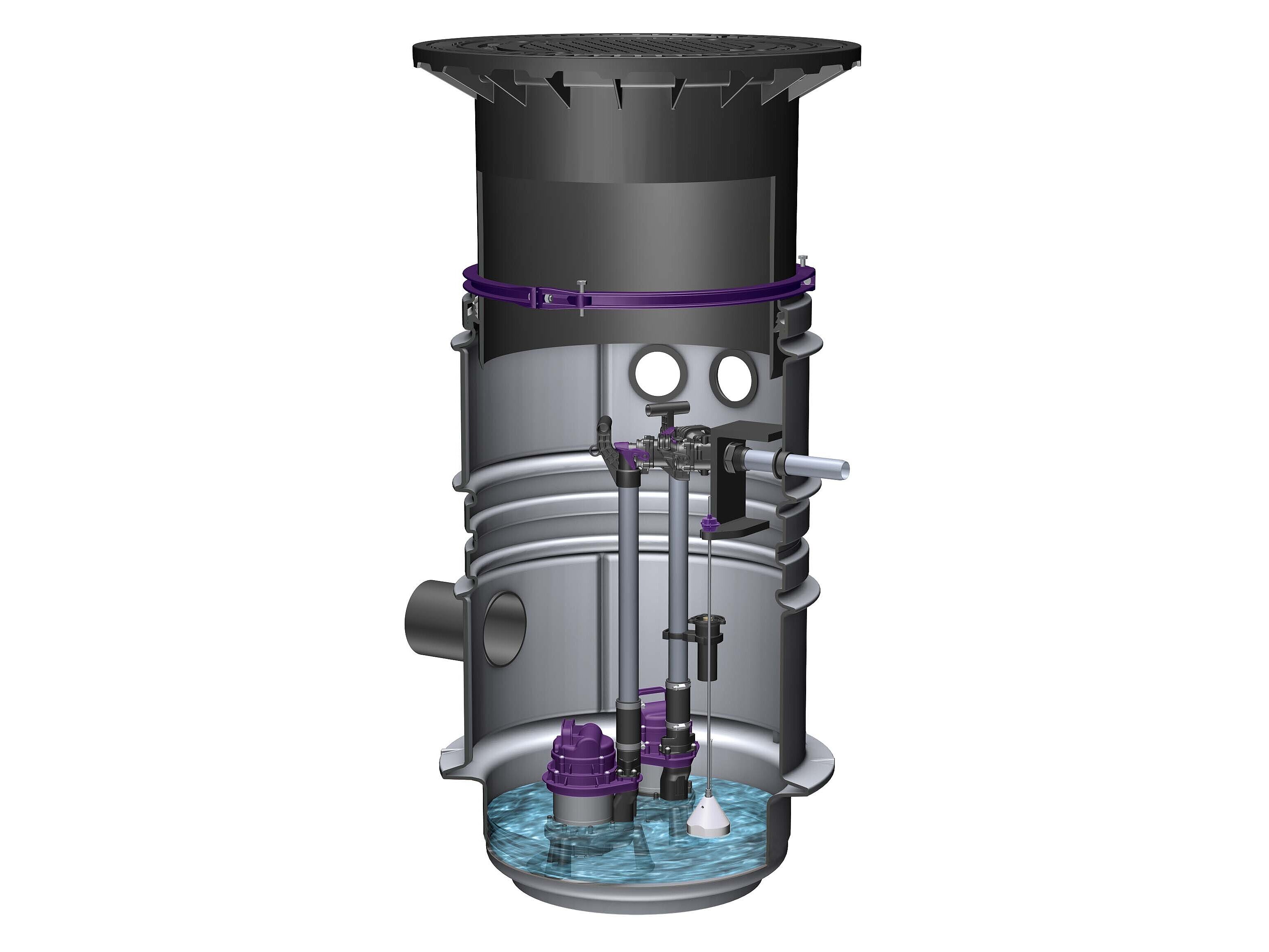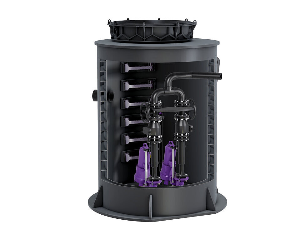 Lifting stations are installed in the building. This means that they require space there. If there is no installation space available, then a pumping station is the solution: it can be installed in a house connection shaft in the ground outside the building. Even if rainwater needs to be drained separately outdoors, a pumping station can provide a solution. This applies, for example, to the drainage of larger open spaces. There is a wide variety of models available: there are pumping stations for sewage with or without faecal matter, as single or twin pump stations with different performance ranges – from small pumps for private homes to powerful pumps for commercial use.