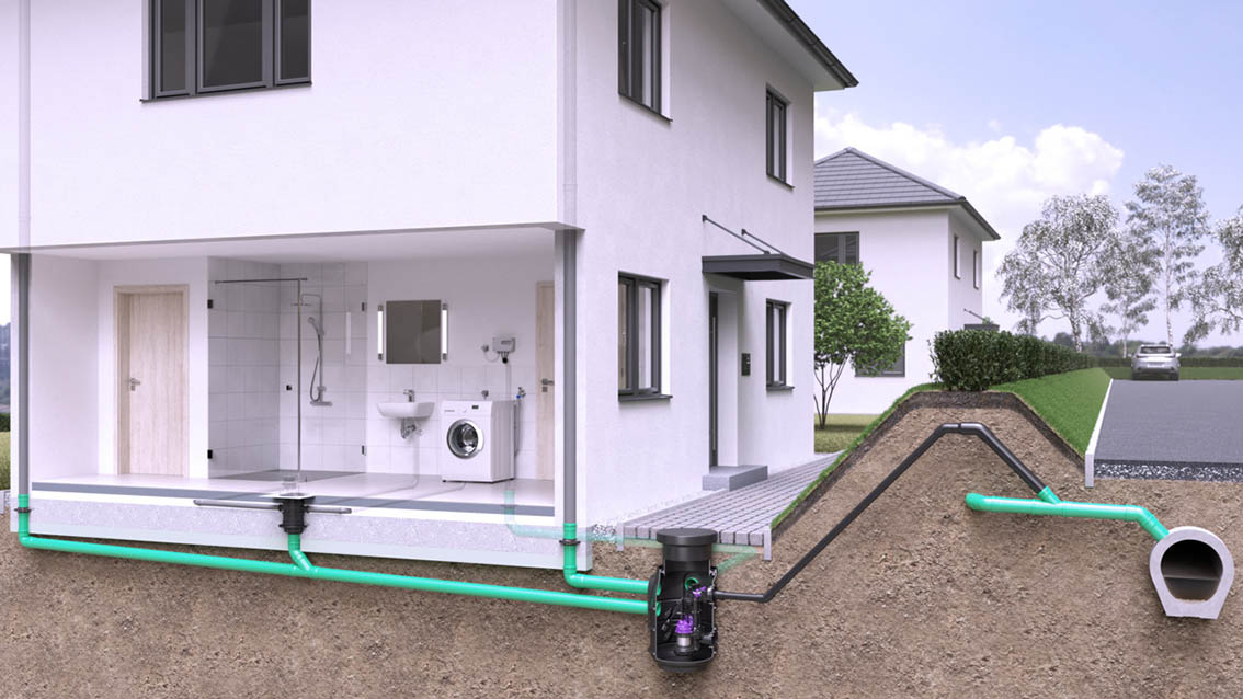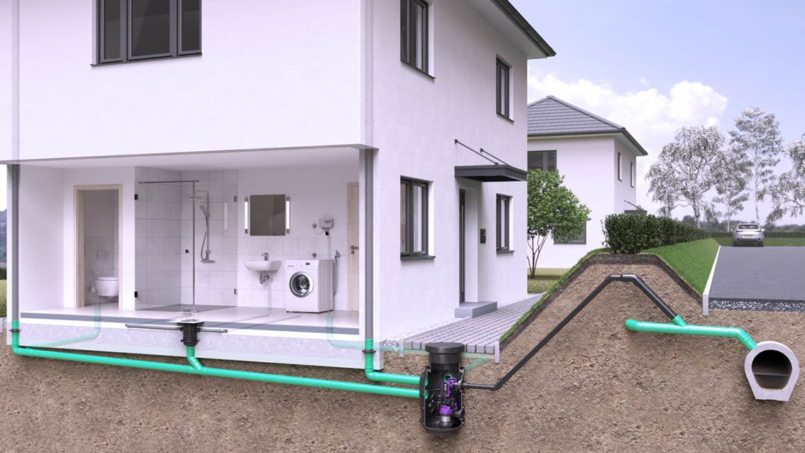 The version for faecal-free wastewater has either one or two GTF 600 or GTF 1250 type suspended pumps. The sound decoupling of the tank reduces the noise level during operation. The non-clogging multi-vane vortex impeller with a 30 mm free ball passage provides for added safety.