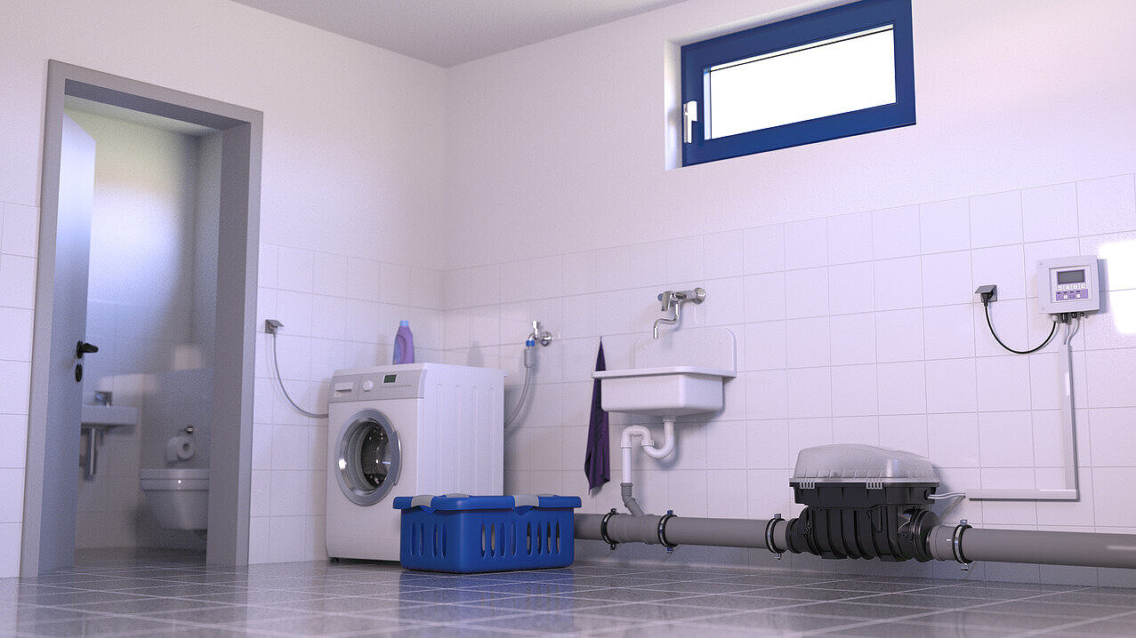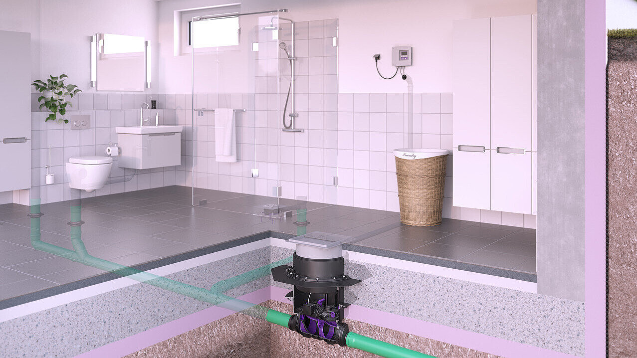 The backwater valve is available for floor slab installation and can also be installed in waterproof concrete by using an extension piece with central flange and an elastomer waterproofing membrane. The integrated drainage function ensures that any surface water that arises, for example due to a pipe break, will be pumped into the sewer despite there being backwater.