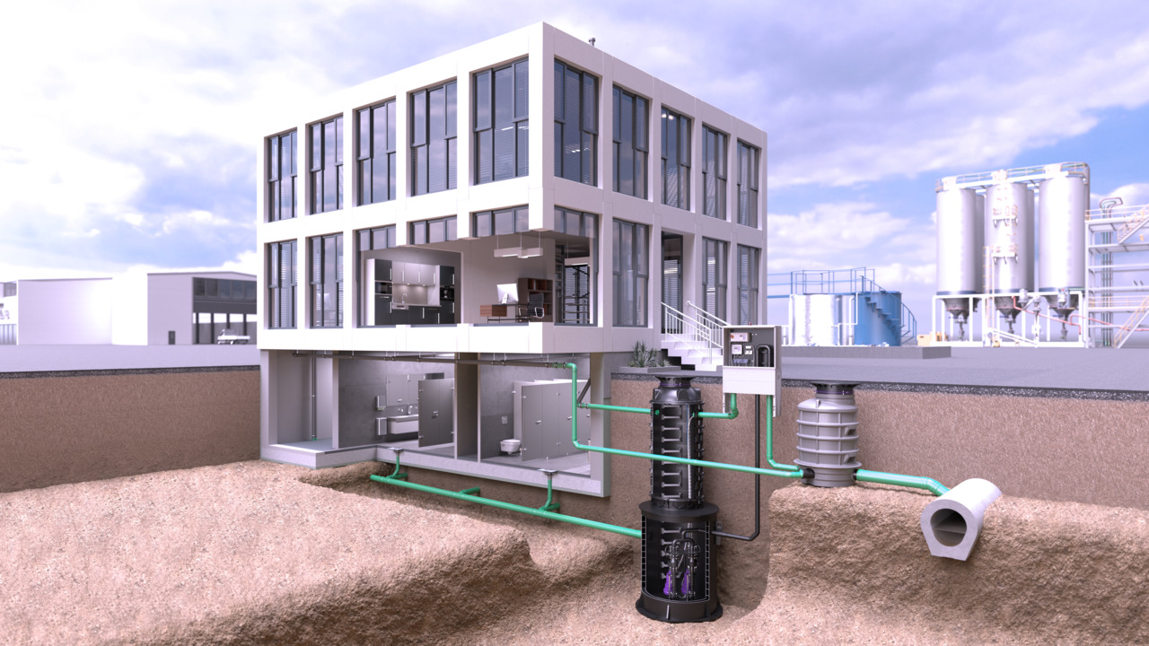 Thanks to the modular design with a large selection of chamber modules and upper sections, the pumping station can be installed both underground and in a floor slab. Our standard engineering chambers are groundwater-resistant up to three metres and can be built up to a height of five metres.