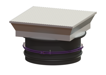 Upper section for continuous height and level compensation for chamber module LW 1000, consisting of a drive-over, flush-to-ground cover for setting in concrete, with inner joints, all-round frost- and weather-proof seal, gas spring as an opening aid incl. self-effective arresting device. An all-round concrete ring must be prepared on site. Suitable for taper with 800 mm access. General characteristics Colour: black Material: Polymer Dimensions Net weight: 152,37 kg Gross weight: 170,1 kg Clear width (LW): 800 mm Adjustment range: 274 - 523 Packaging dimension: length: 1200 mm Packaging dimension: width: 1200 mm Packaging dimension: height: 2200 mm Coverage features Type: surface water resistant Surface: Stainless steel Locking: screwed Load class: D 400 (EN 124)