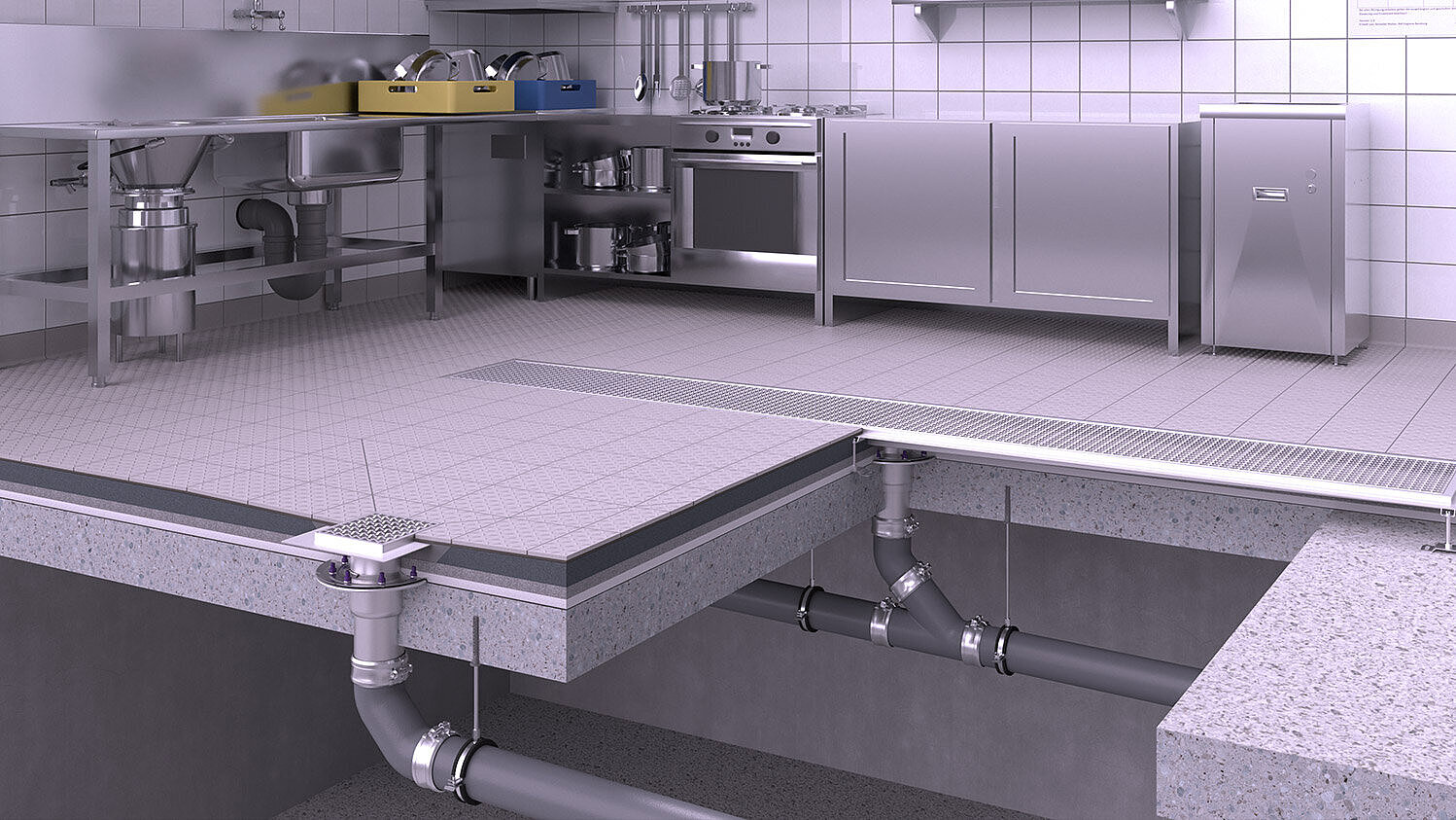 With regard to the stainless steel channels used in kitchen and swimming pool areas, there are barely any differences except for the dimensions. Box channels with a glued flange are mainly used here. Grated covers, bar grates and plate covers are mainly used in kitchens or commercial areas in order to ensure the joint sealing in accordance with the relevant sealing standard.