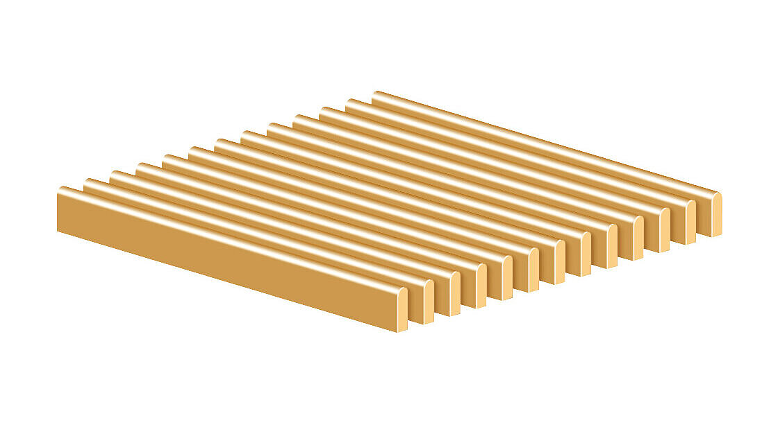 Suitable for barefoot areas, brushed surface, anti-slip R 12 (DIN 51130), assessment group C (DIN 51097), KESSEL design, insertion depth 25 mm, thickness 2 mm, class K 3