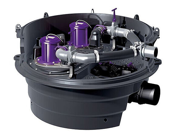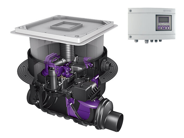 The lifting station is a tried and tested method to protect drainage points below the backwater level against backing up. It pumps the wastewater through a backwater loop, or directly back into the pipe down stream of the unit, which reliably prevents water from entering the house against the direction of flow. This ends the matter for many people when it comes to choosing a backwater protection system – although the right conditions are often met to save a large proportion of the electricity and maintenance costs with an environmentally friendly hybrid solution. Before you reach for a conventional lifting station, you should therefore check carefully whether your installation situation actually requires constant pump operation.